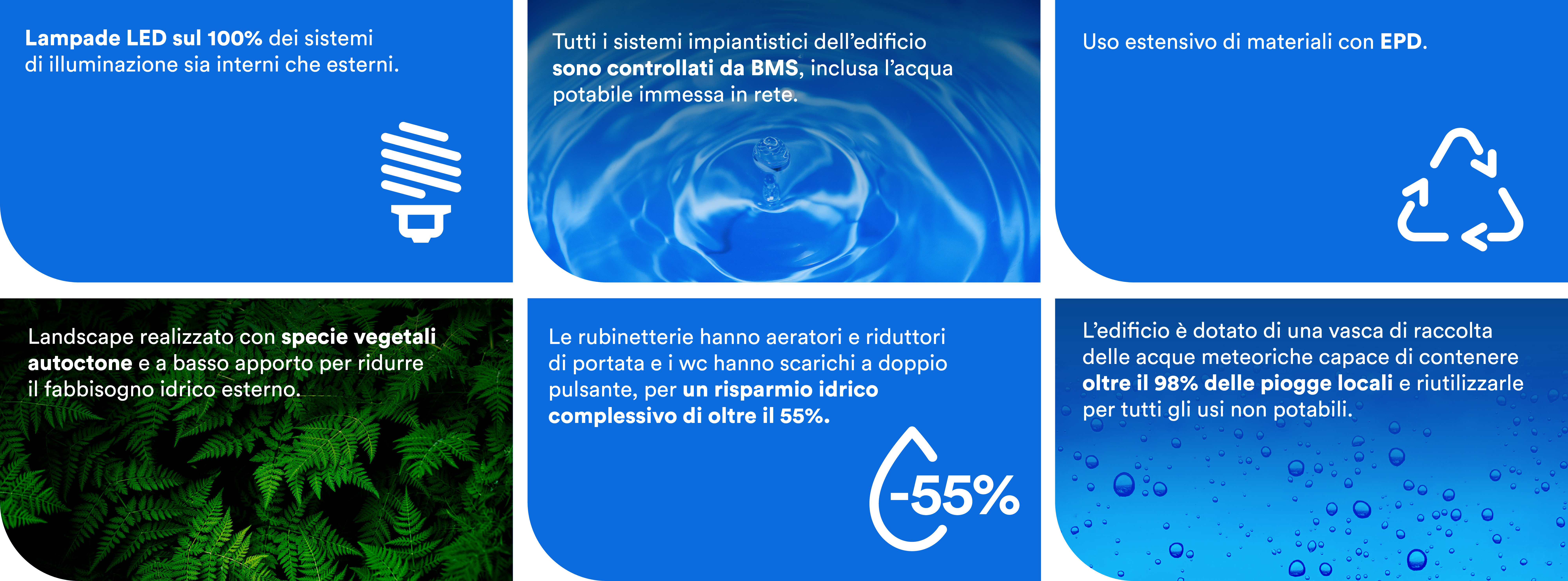 All’esteno, aree verdi e percorsi pedonali rafforzano il senso di vivibilità e socialità del distretto.