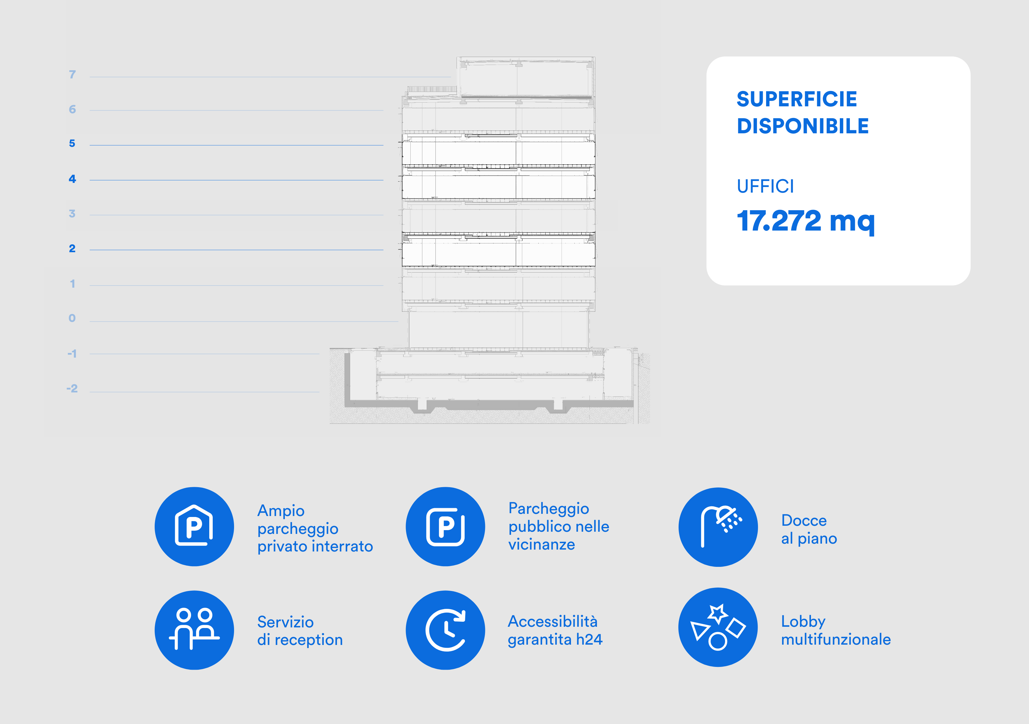 La massima flessibitità degli spazi è stata ottenuta con un inenso e ragionato lavoro impiantistico e con i nuovi scensori che hanno reso le superfici dinamiche e modulari. La flessibilità è confermata anche dalla scelta di riservare il primo dei 6 livelli dell’edificio a flex office con sale riunioni, uffici open e suite di supporto a tutti i tenane e alla popolazione in crescita di Milano Santa Giulia.