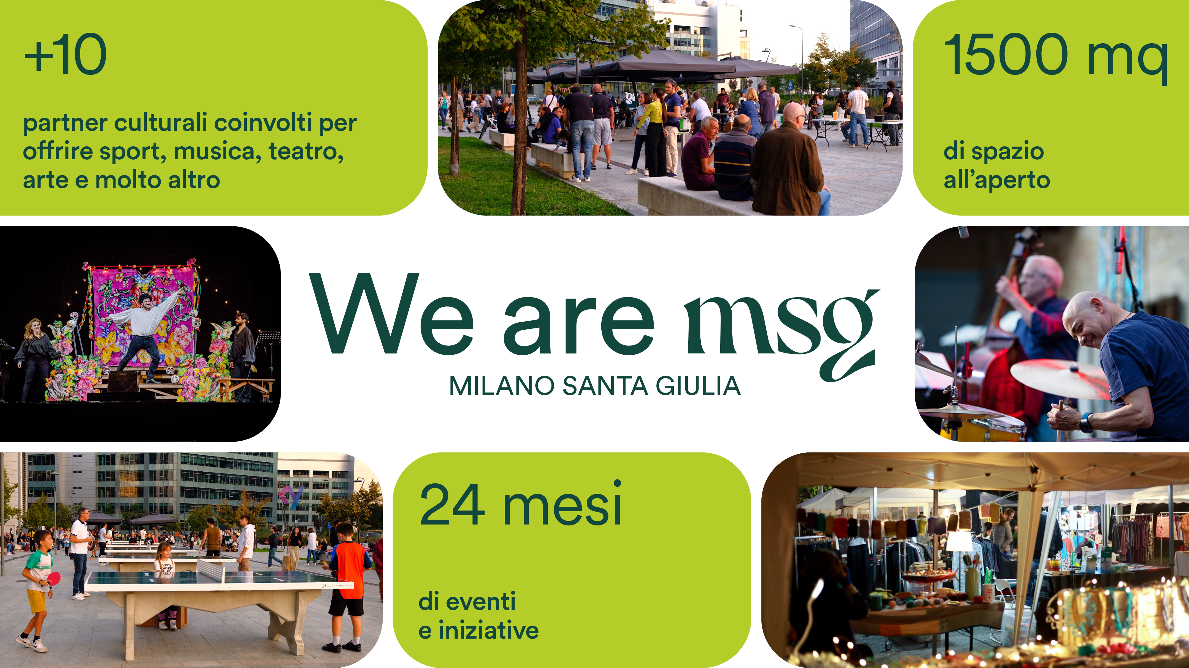 We are MSG è un progetto ambizioso che punta a trasformare Milano Santa Giulia in un nuovo polo di cultura, socialità e partecipazione attiva. Attraverso un programma biennale ricco di eventi e iniziative, il quartiere diventa un laboratorio a cielo aperto dove numeri, spazi e persone raccontano la portata di questa rigenerazione urbana. Ecco alcune cifre che descrivono l’anima pulsante di We Are MSG.